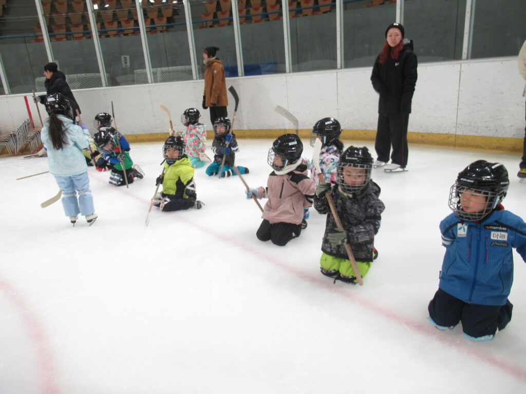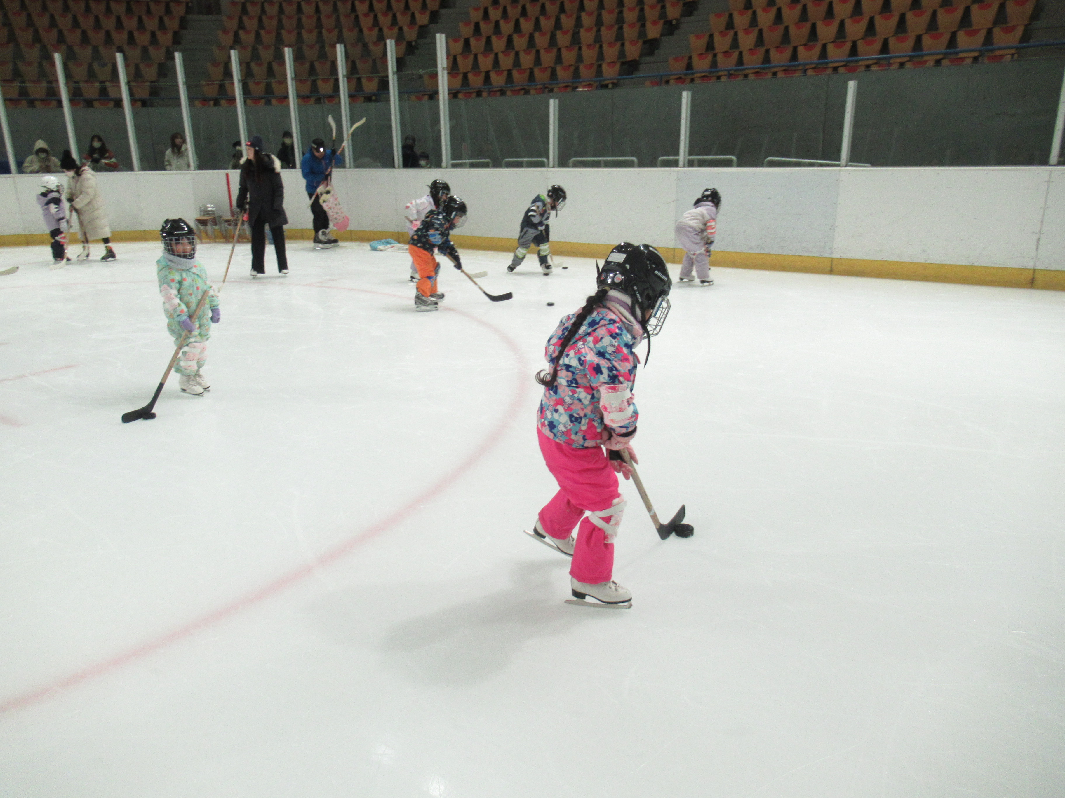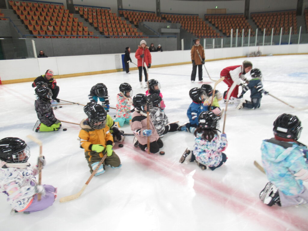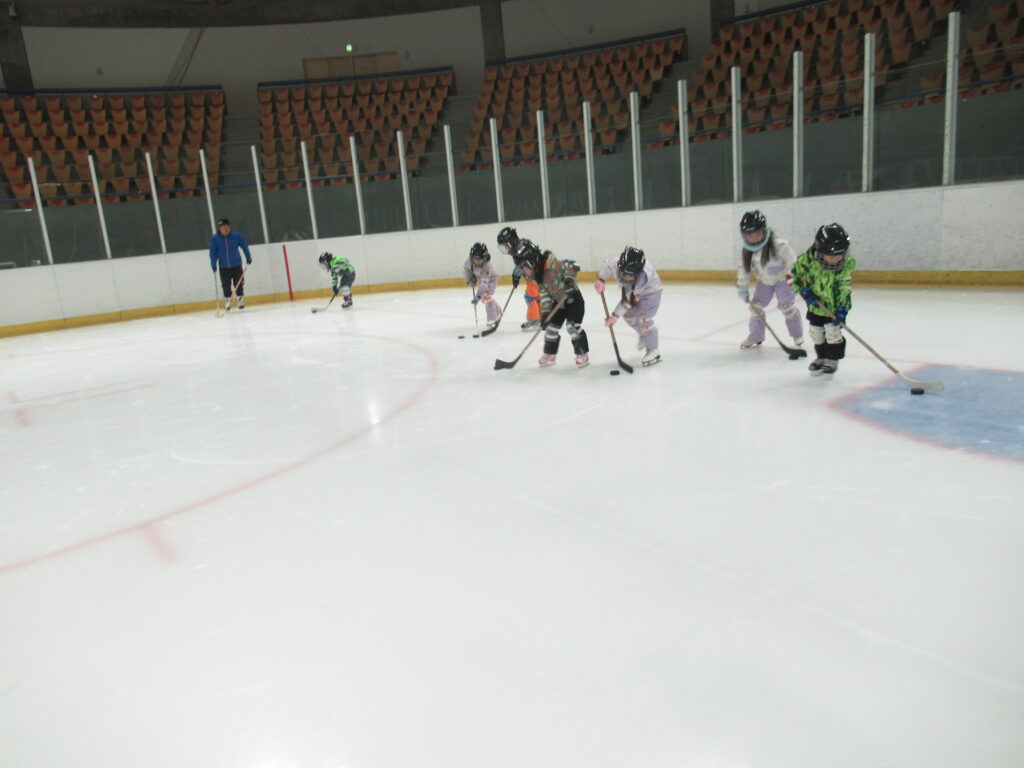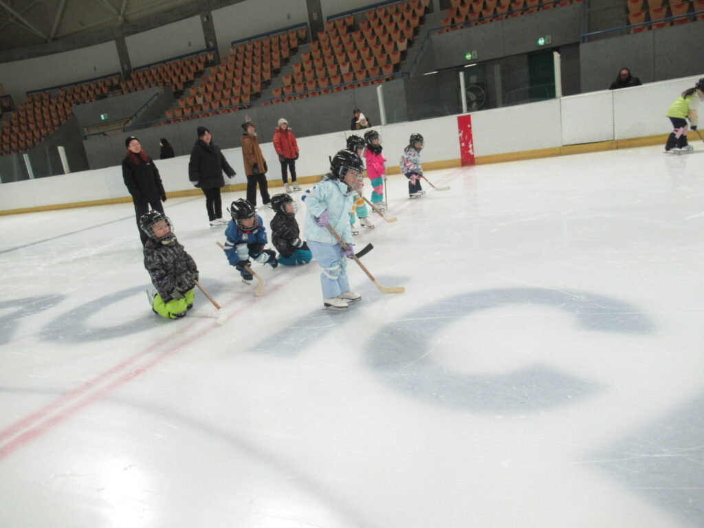 らいおんさんは、スティックを持って滑ったり、パックを運ぶ練習をしました!
