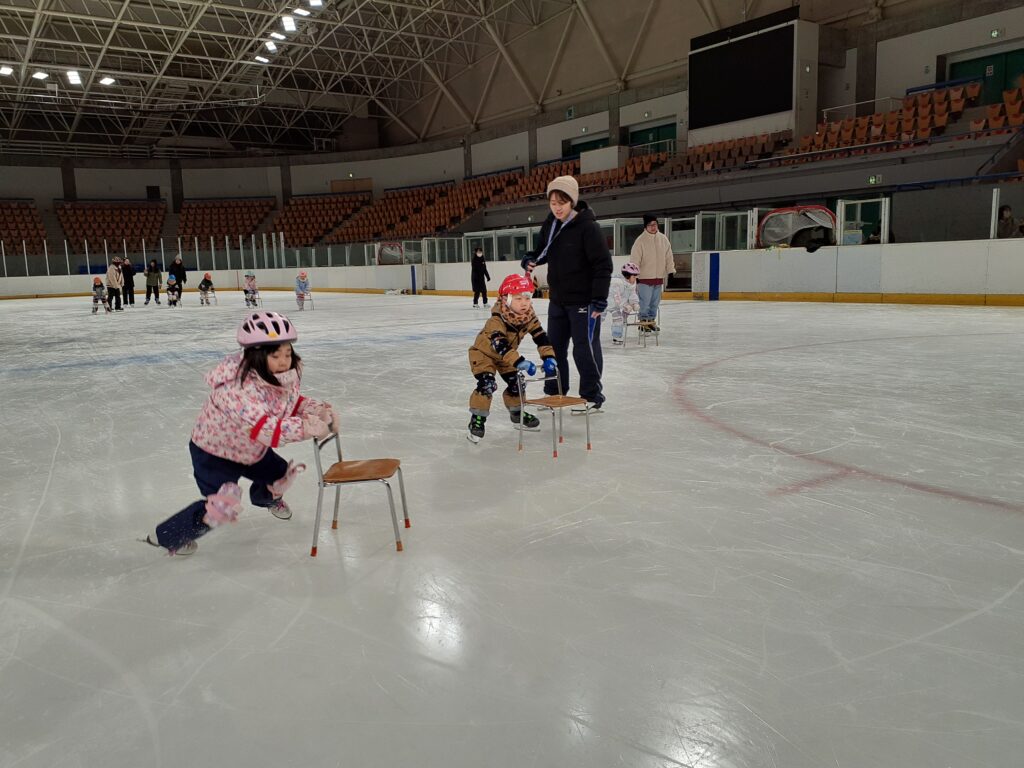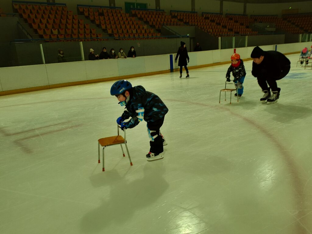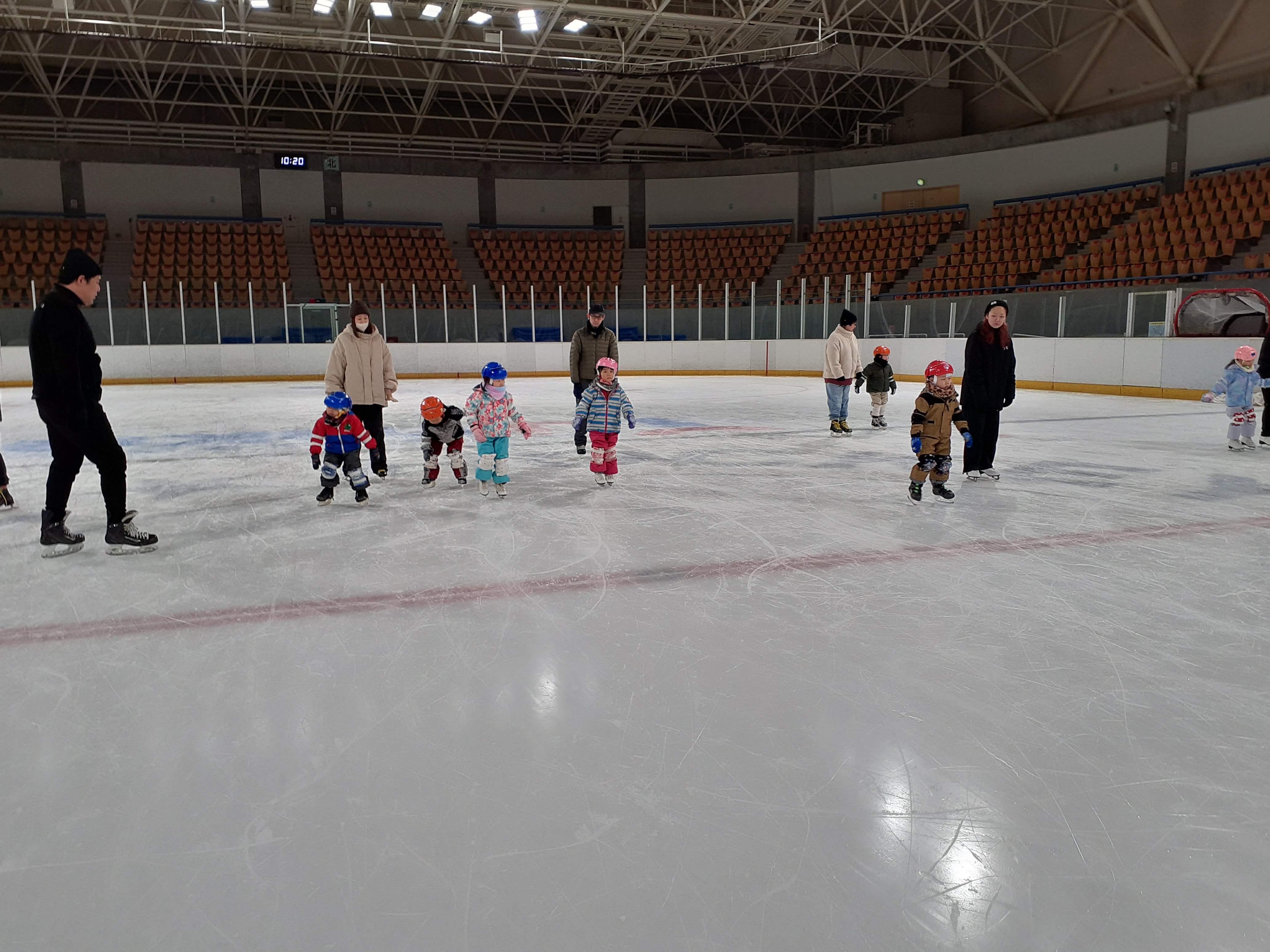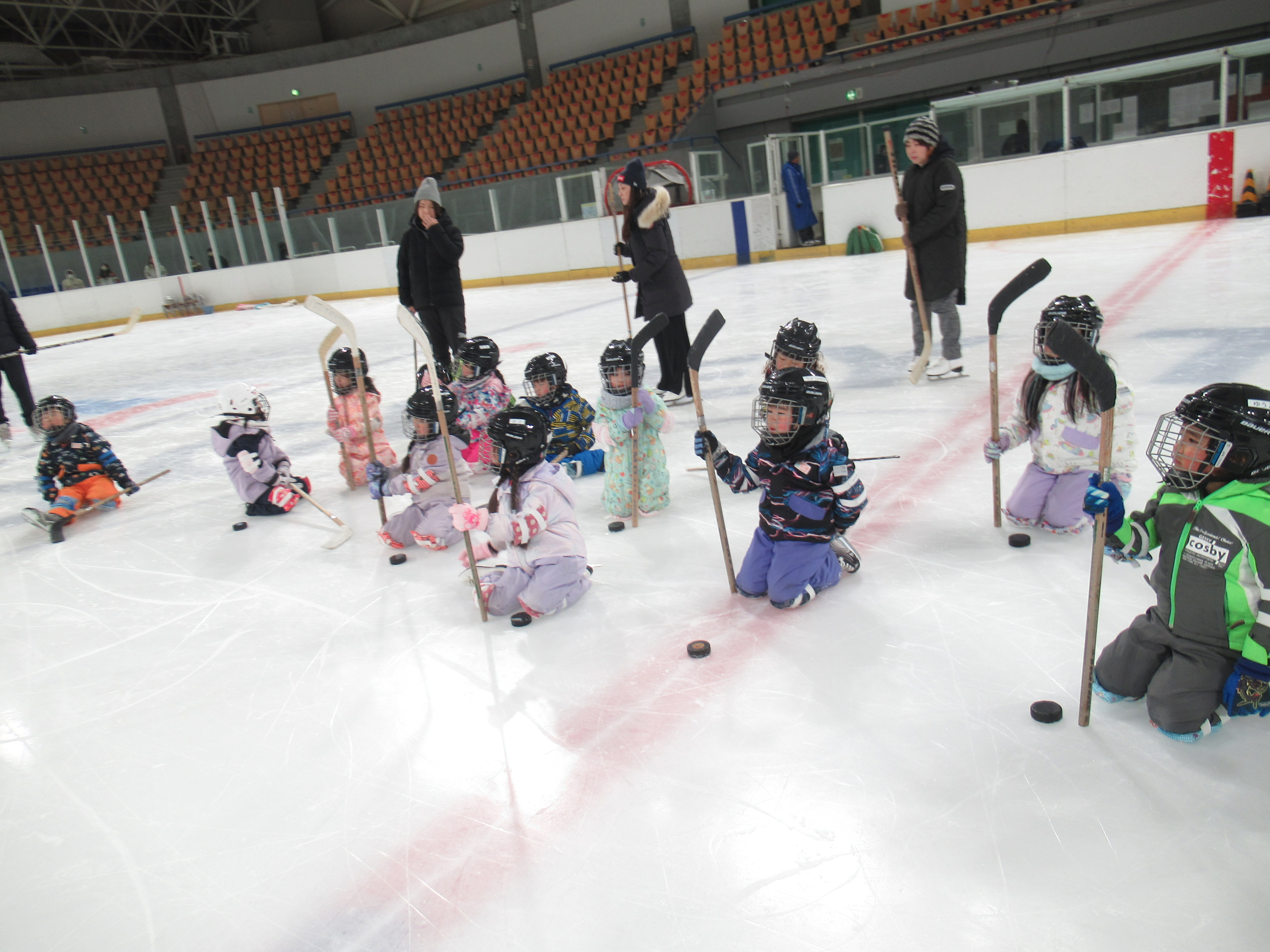 らいおんさんは、スティックを持って滑ったり、パックを運ぶ練習をしました!