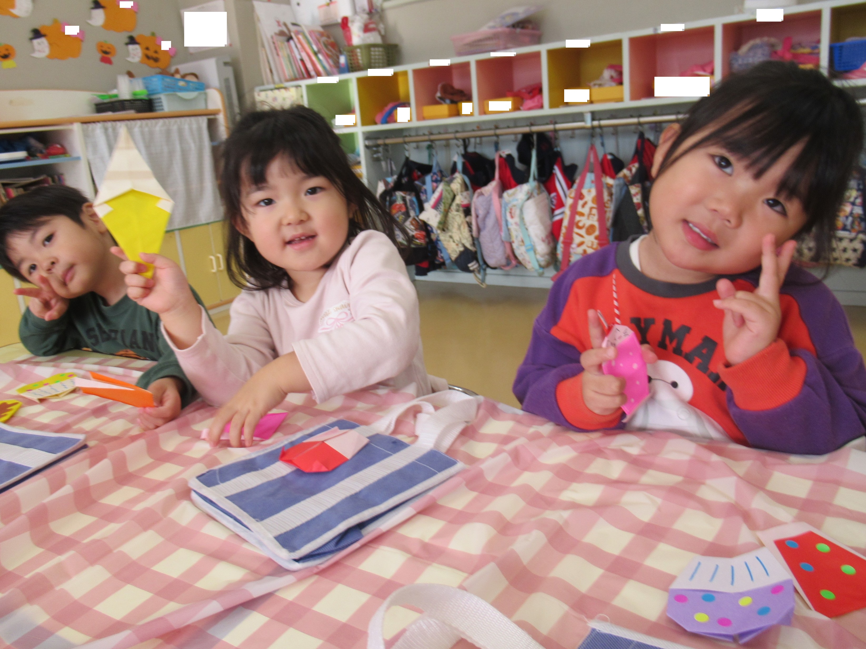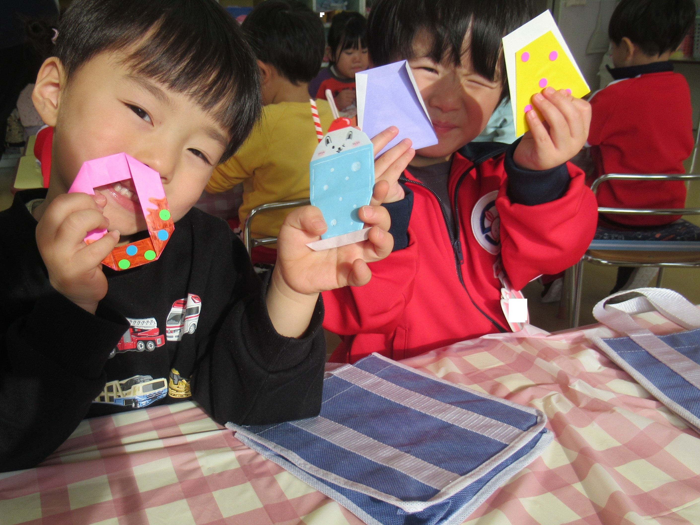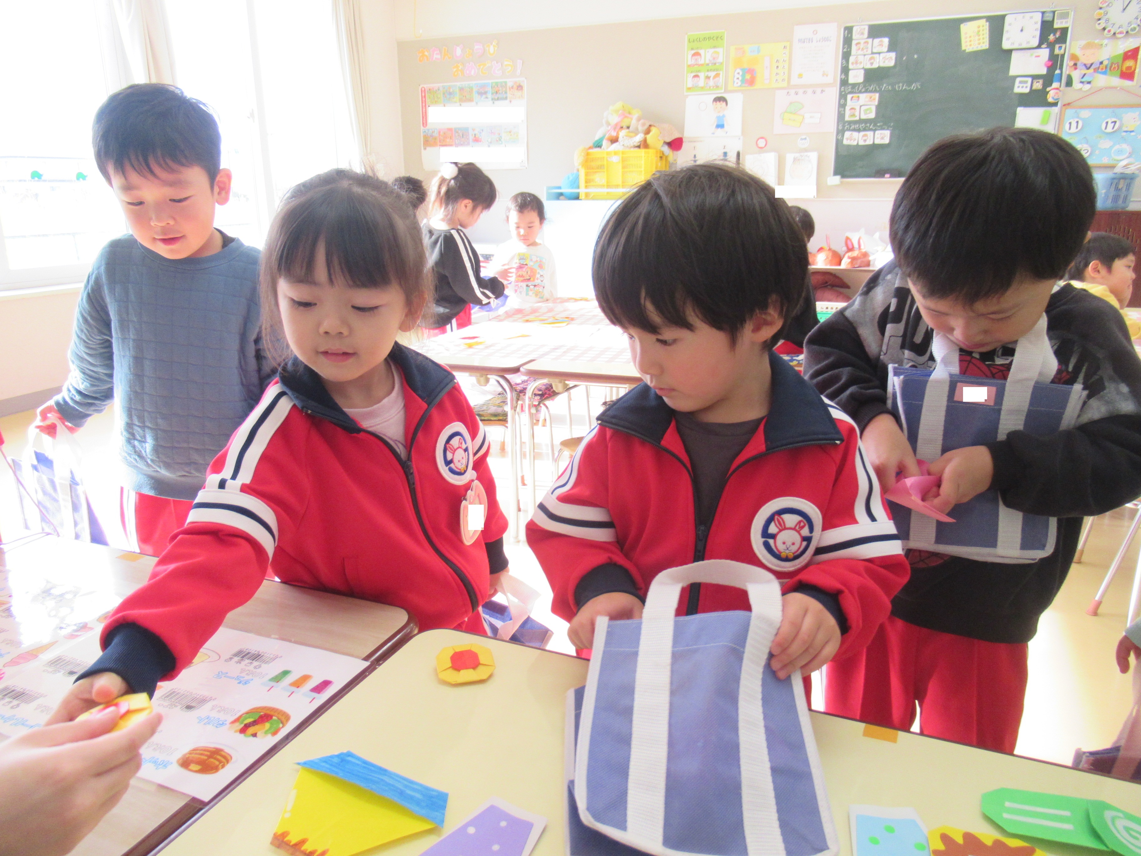いつものお店屋さんごっことは違い今回は担任が店員さんになり、お客さんの子どもたちに、折り紙で作ったスイーツを売りました🥰