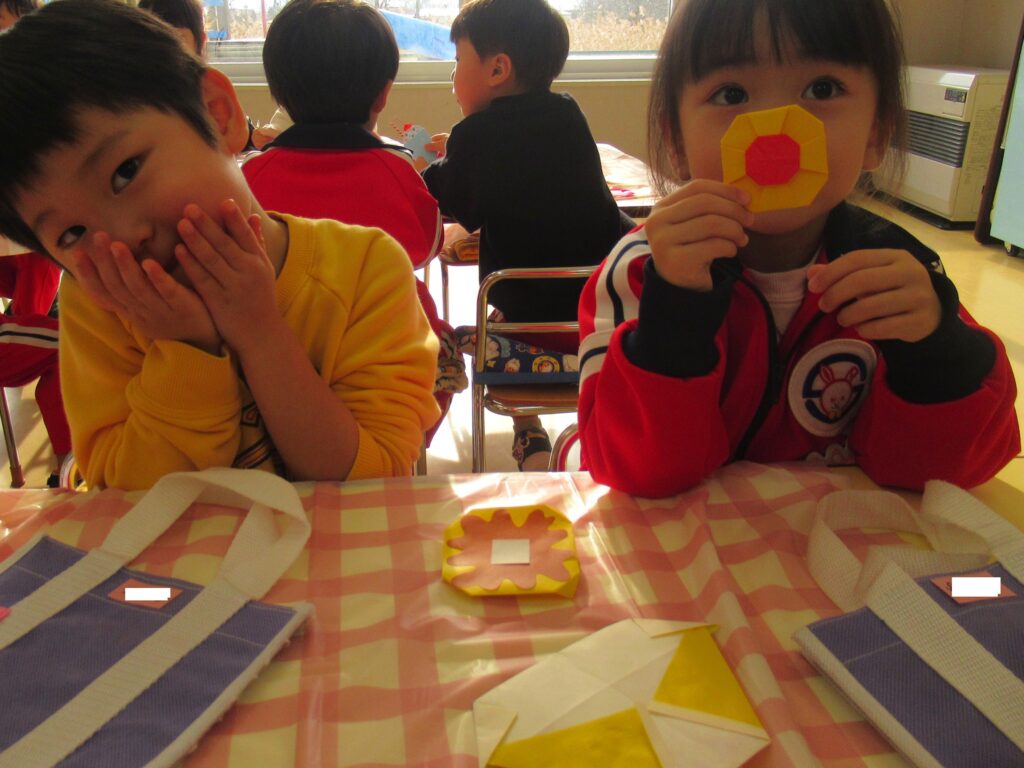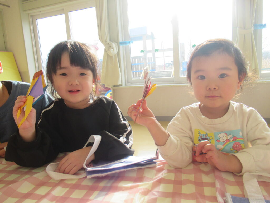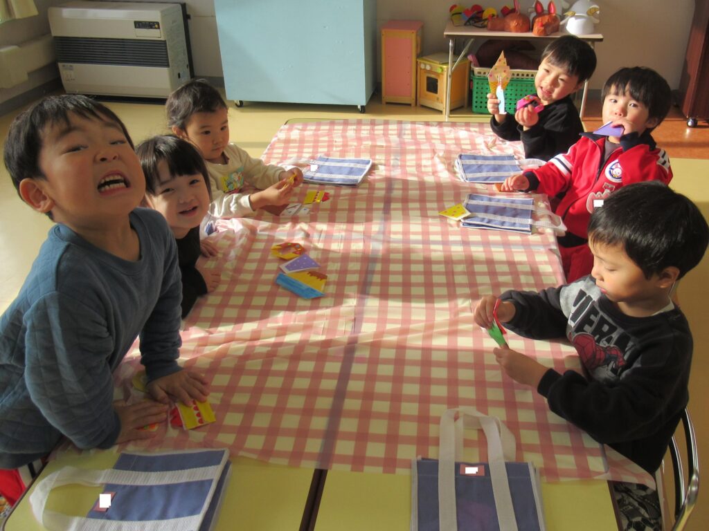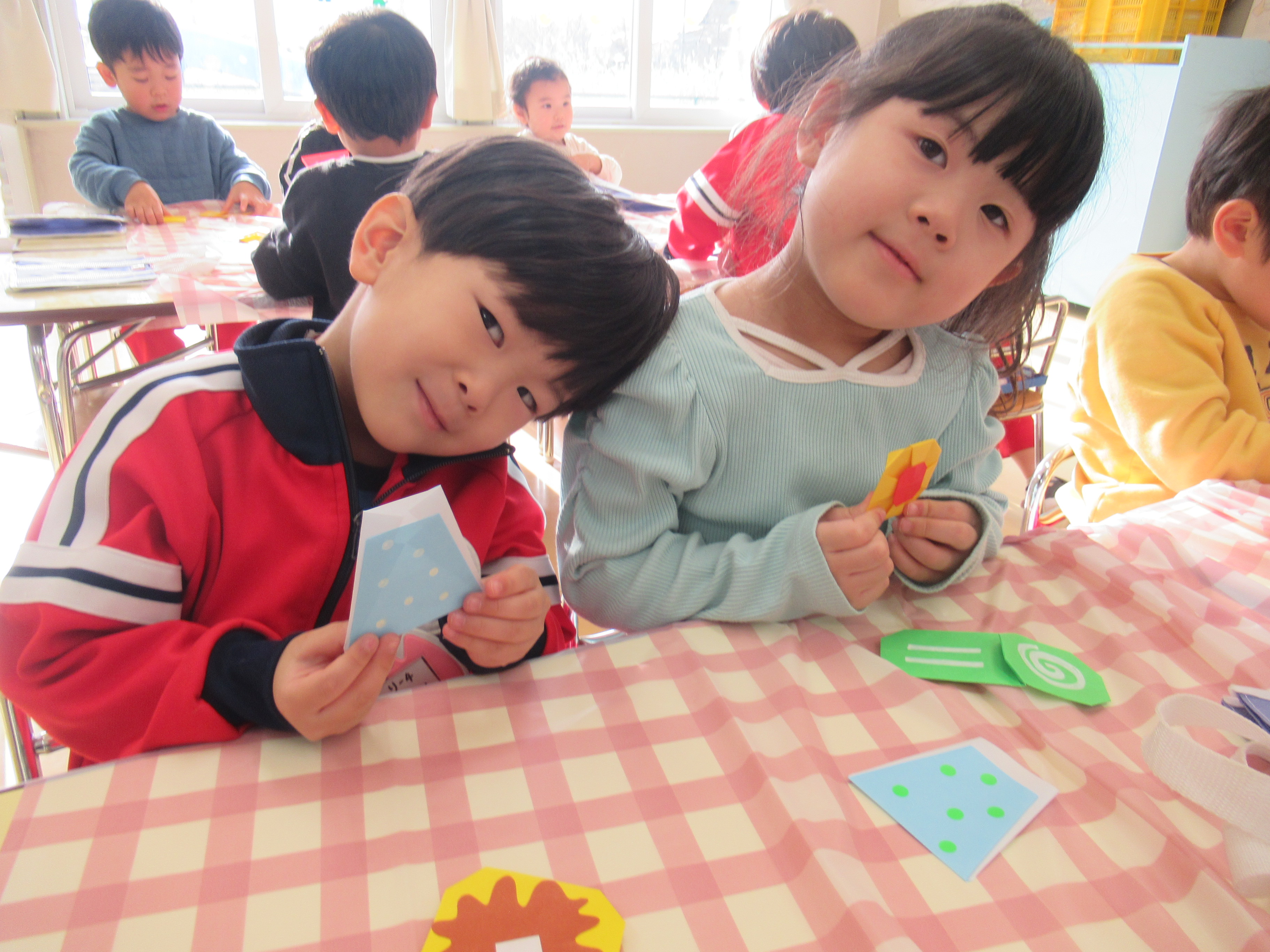 いつものお店屋さんごっことは違い今回は担任が店員さんになり、お客さんの子どもたちに、折り紙で作ったスイーツを売りました🥰