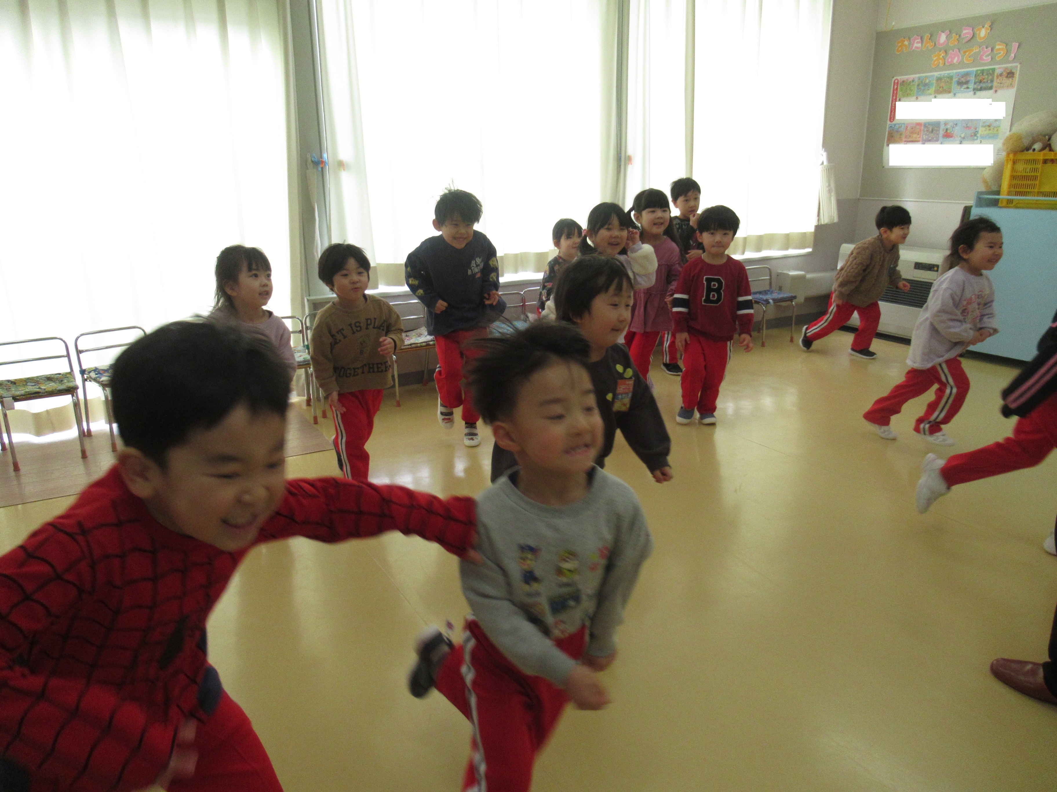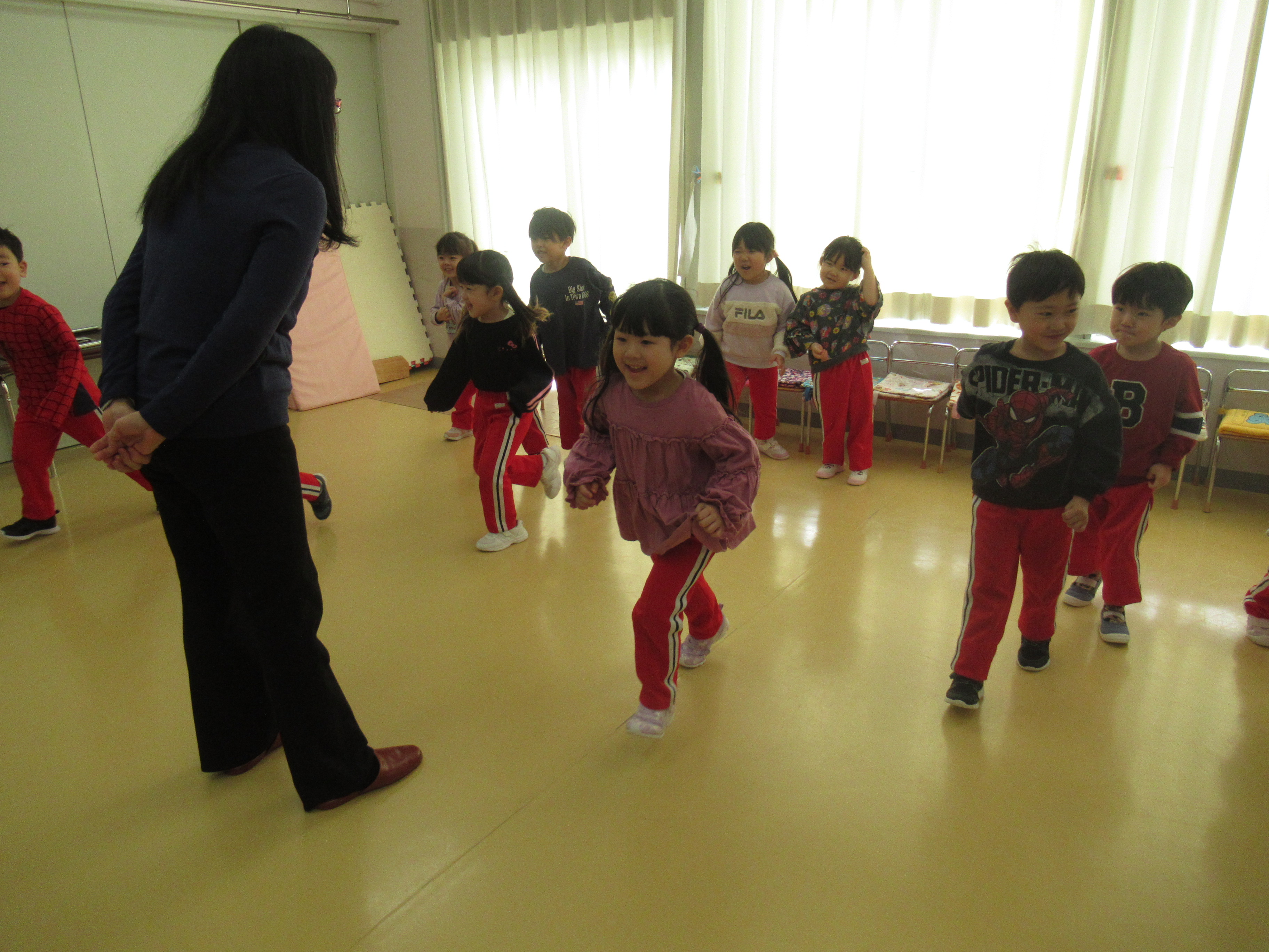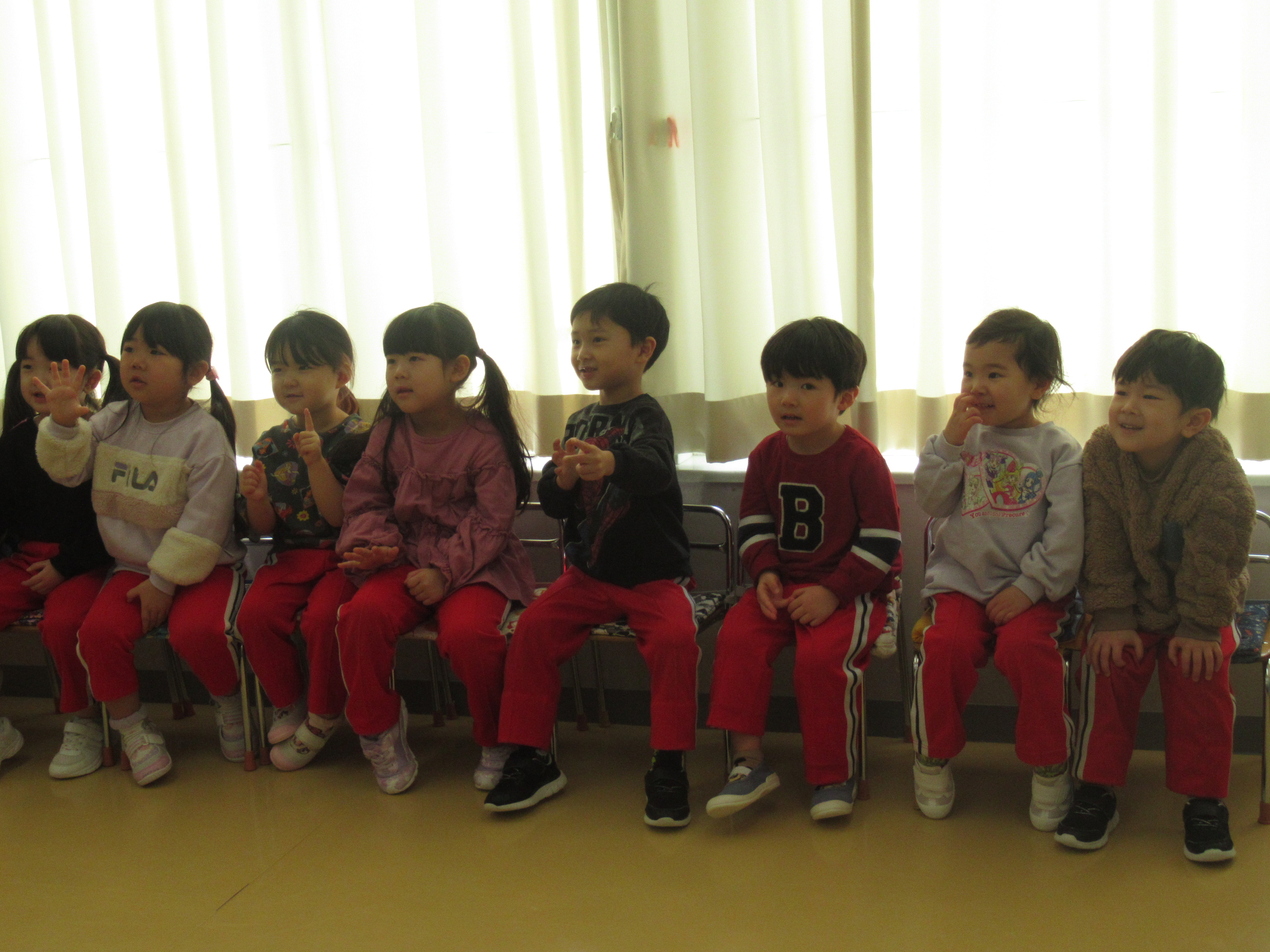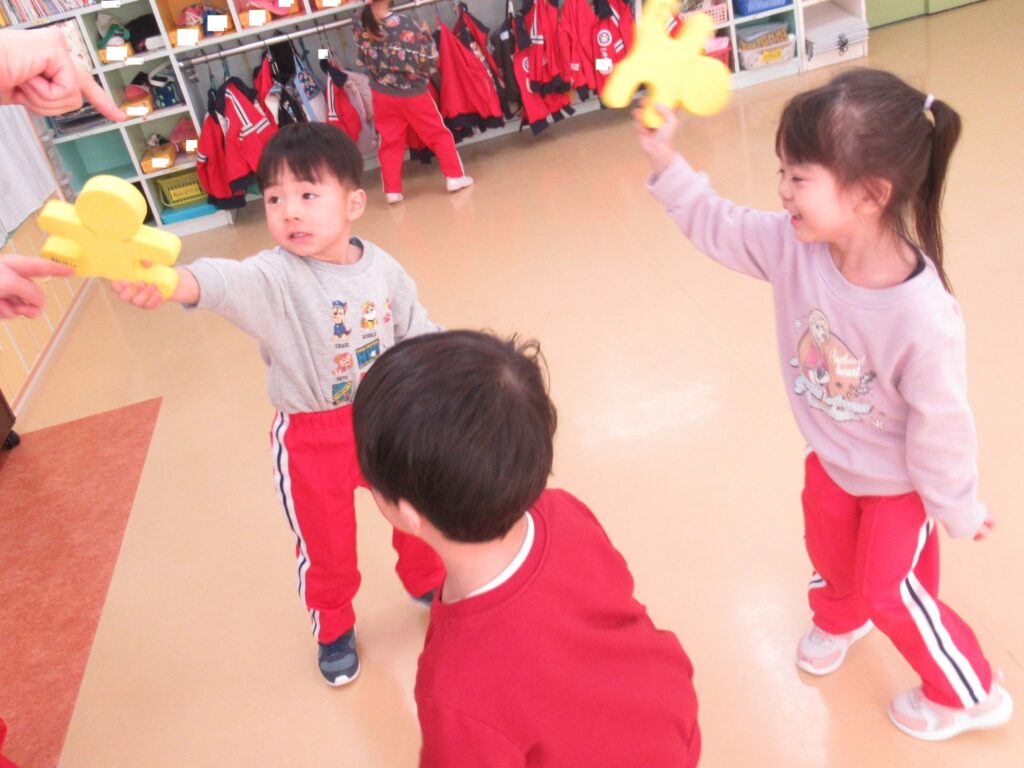 ブログ 2026.02.19 年少英語教室④(最終) 2月19日(木) 今日は最後の英語教室でした!! すっかり英語が大好きになったりすさん・ぱんださんは、先生が来るとすぐに「Hello~😄」と、ご挨拶していました🥰 色の名前もしっかり覚え、今日は新しく”Yellow”を教えてもらいました🎶 次回の英語教室は年中さんになってからです🌟頑張りましょうね💪 前の記事 一覧を見る 次の記事