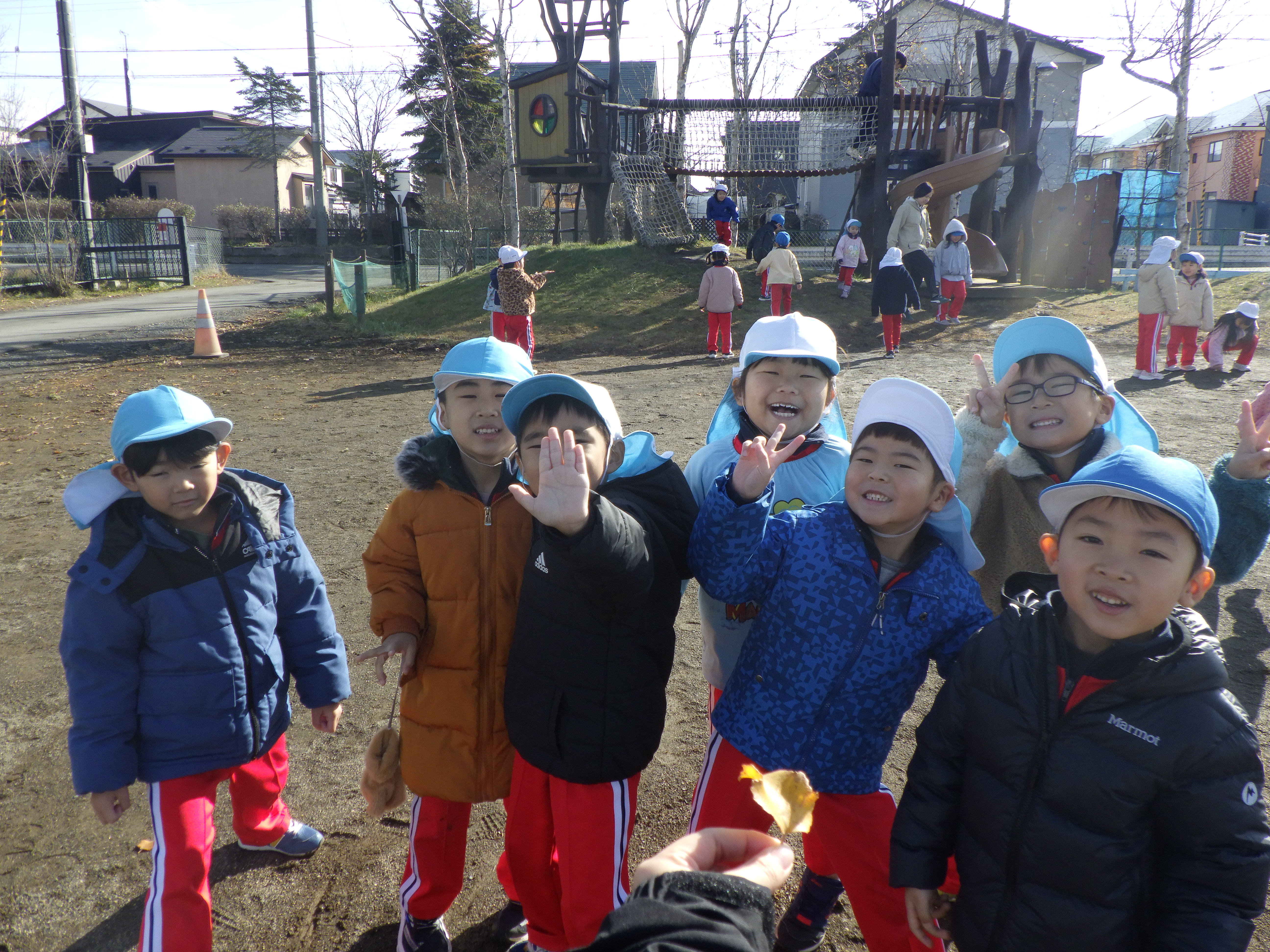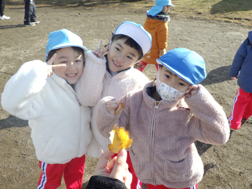 「少し寒くなってきたね~」「落ち葉がたくさんあるよ🍁」と季節を感じながら、楽しく遊ぶことが出来ましたね😊