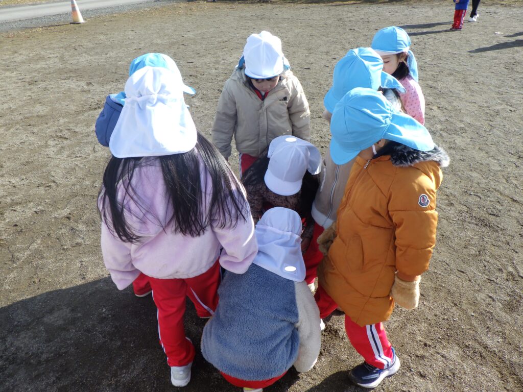 木の枝でお絵描きやみんなで中央に足を出し、鬼決めをする等、らいおんさんならではの姿がありました♬