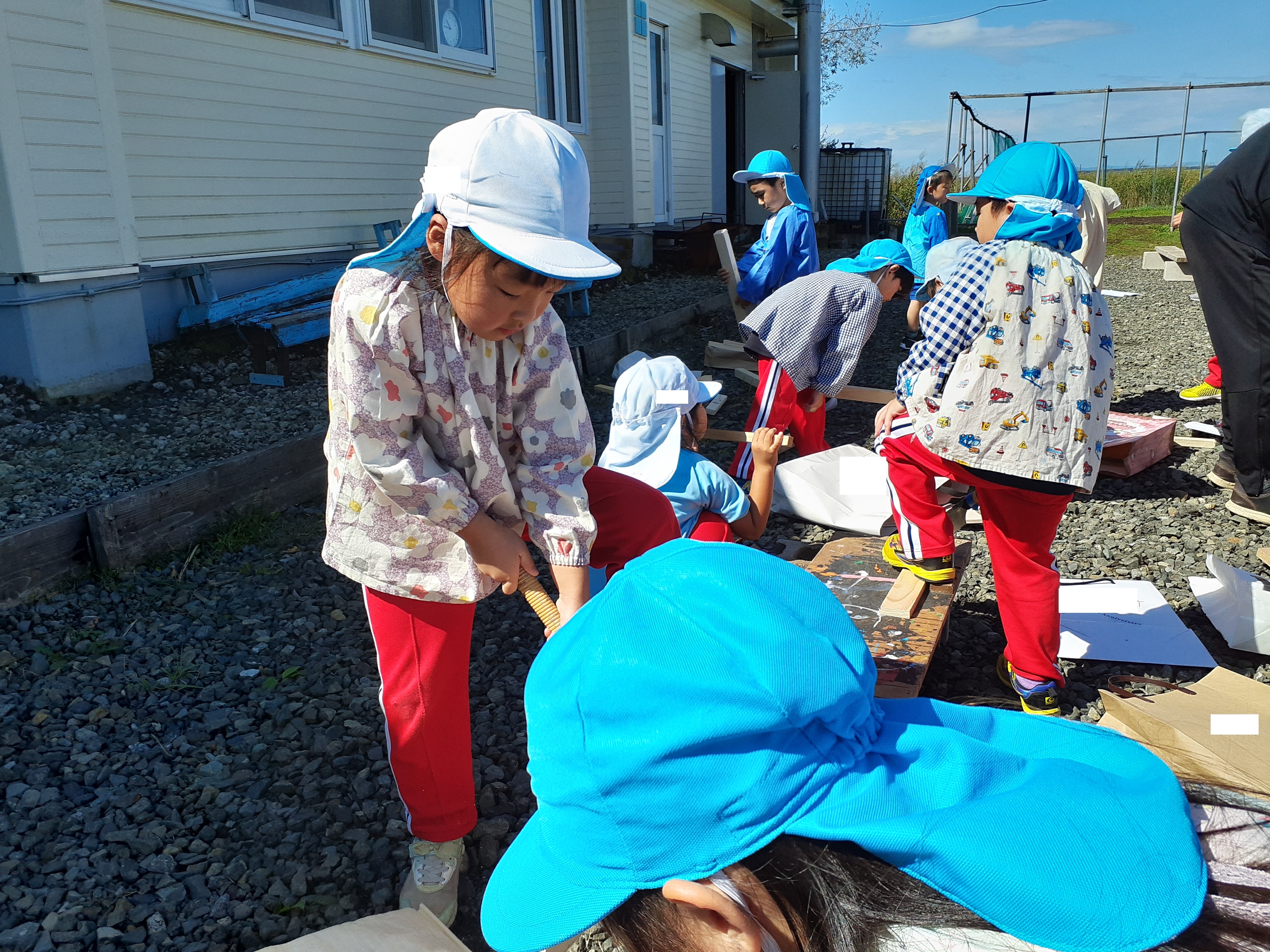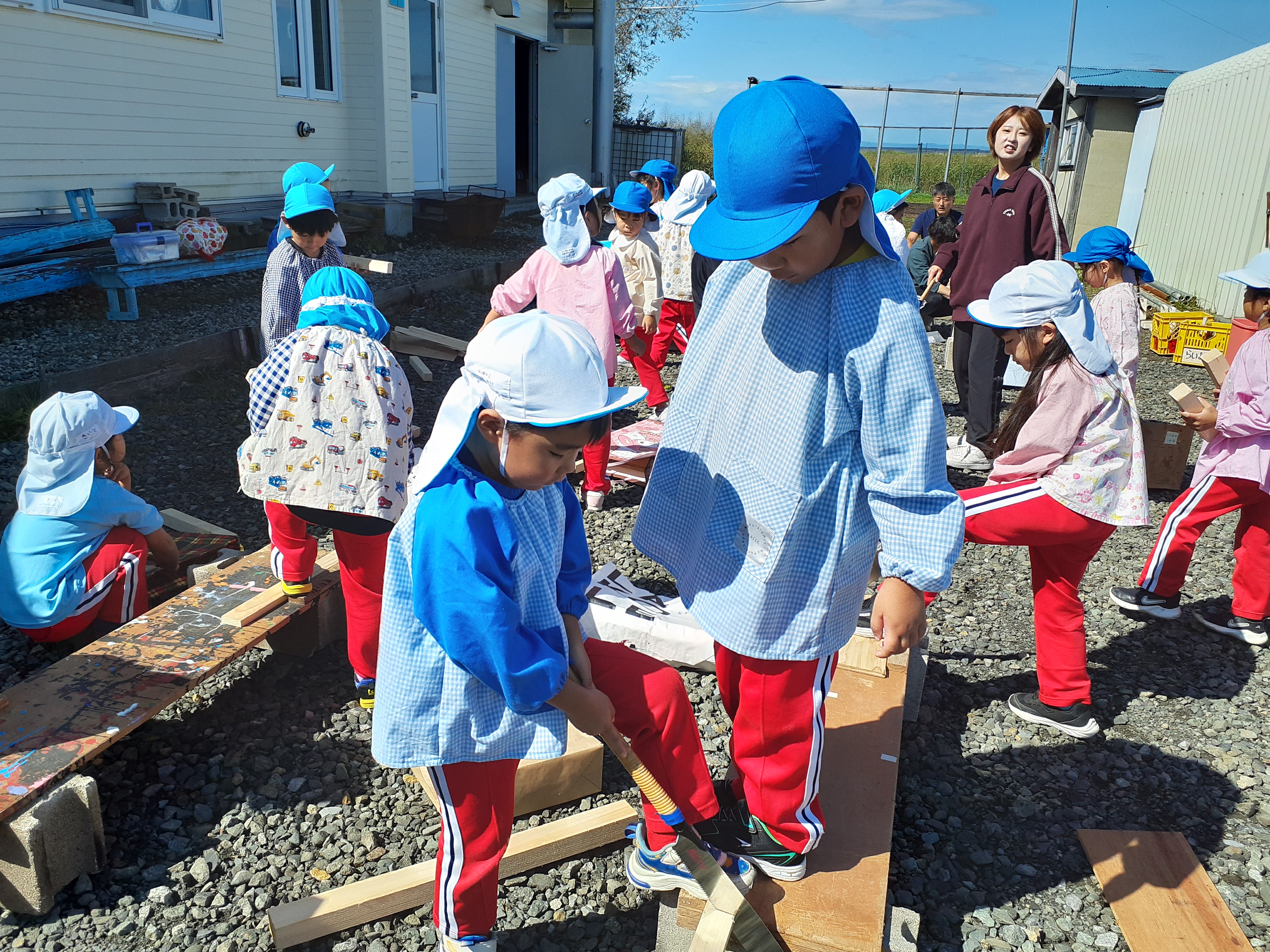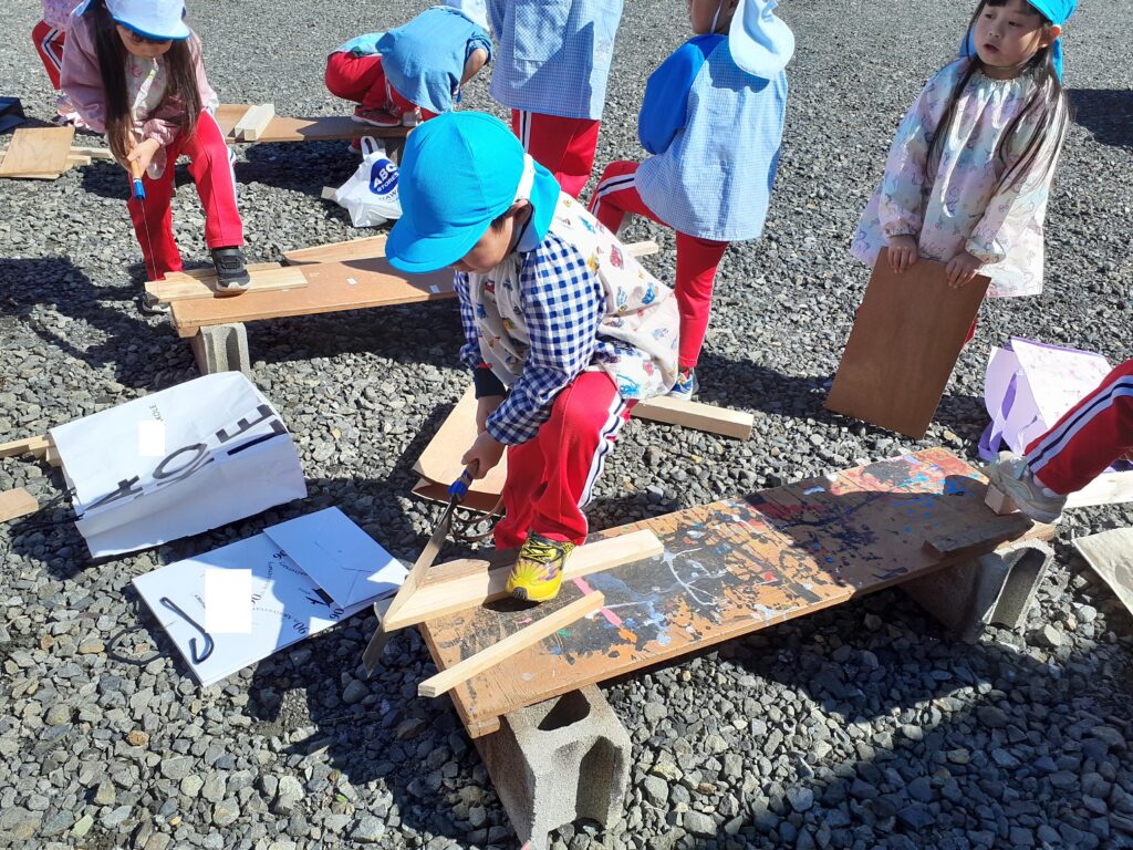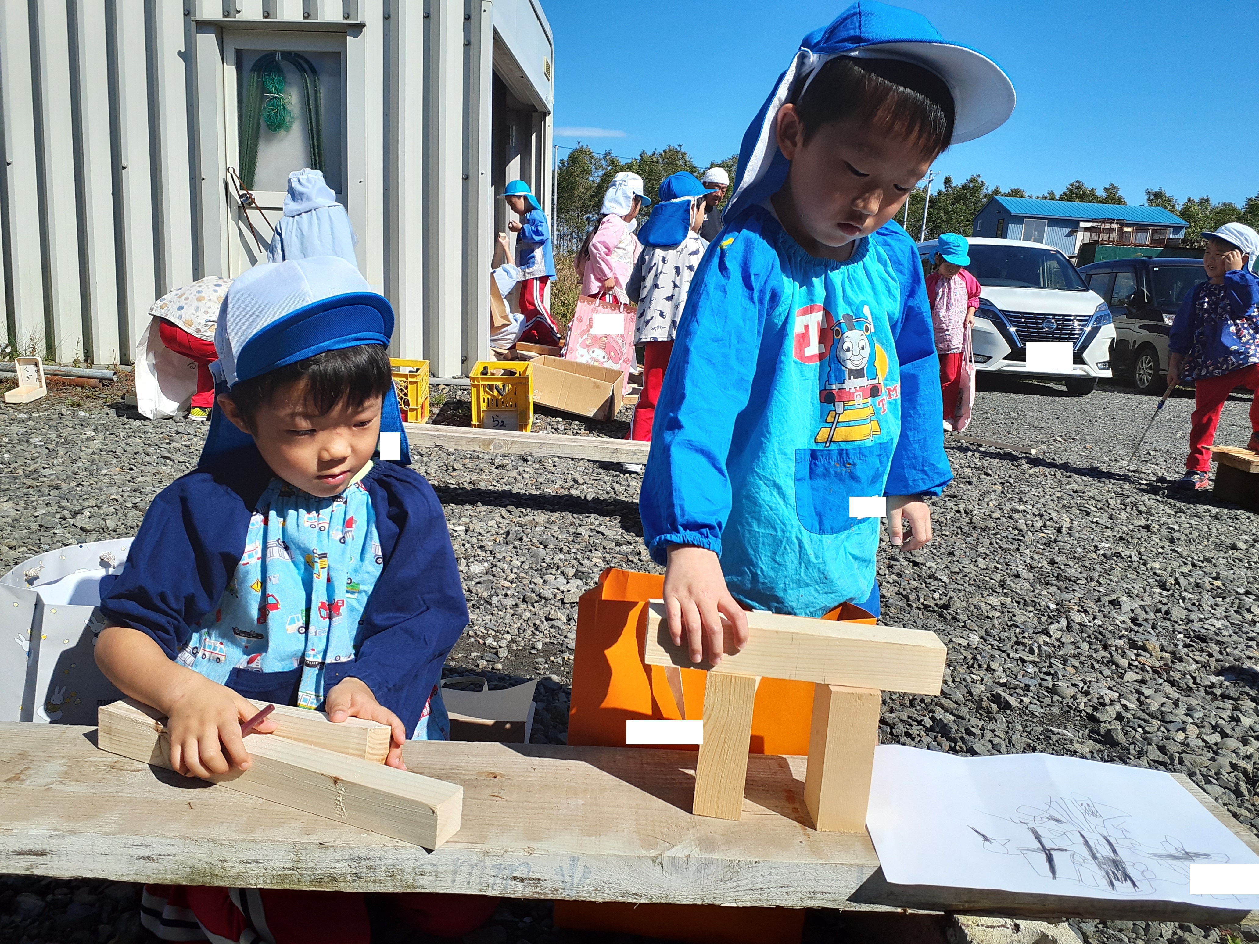 大工のお友だちは、作りたい物の設計図を描き、木材を集め、作業を始めました✨