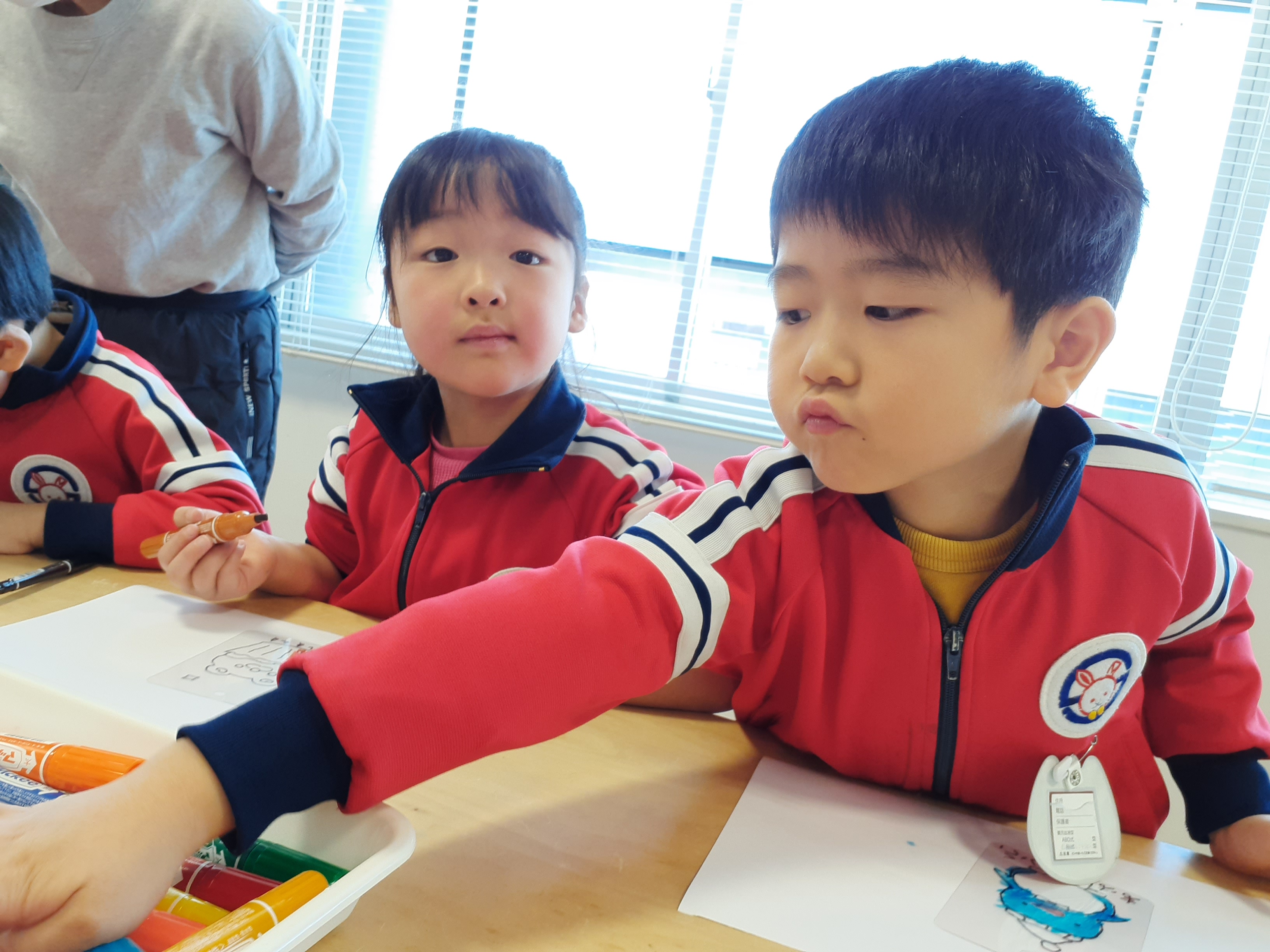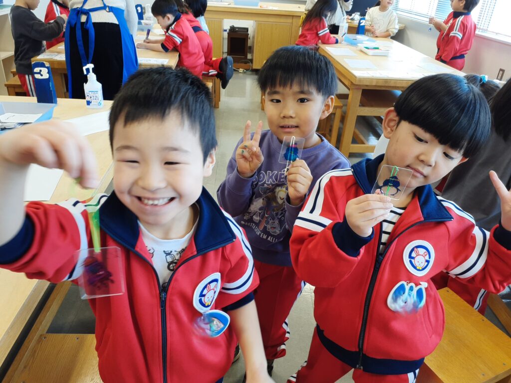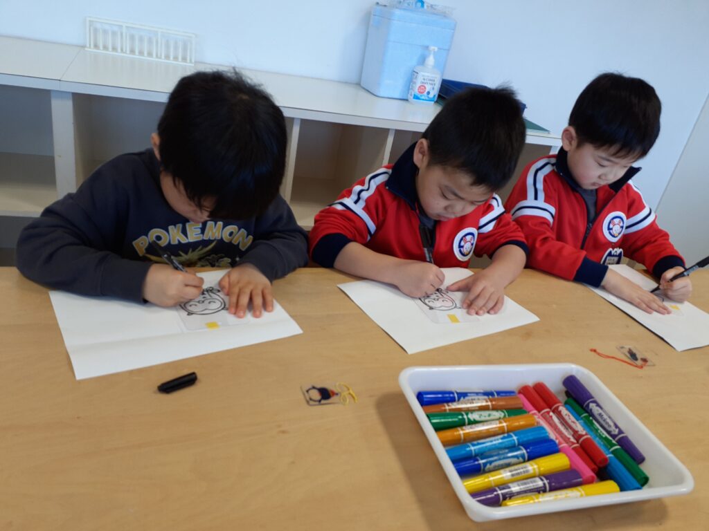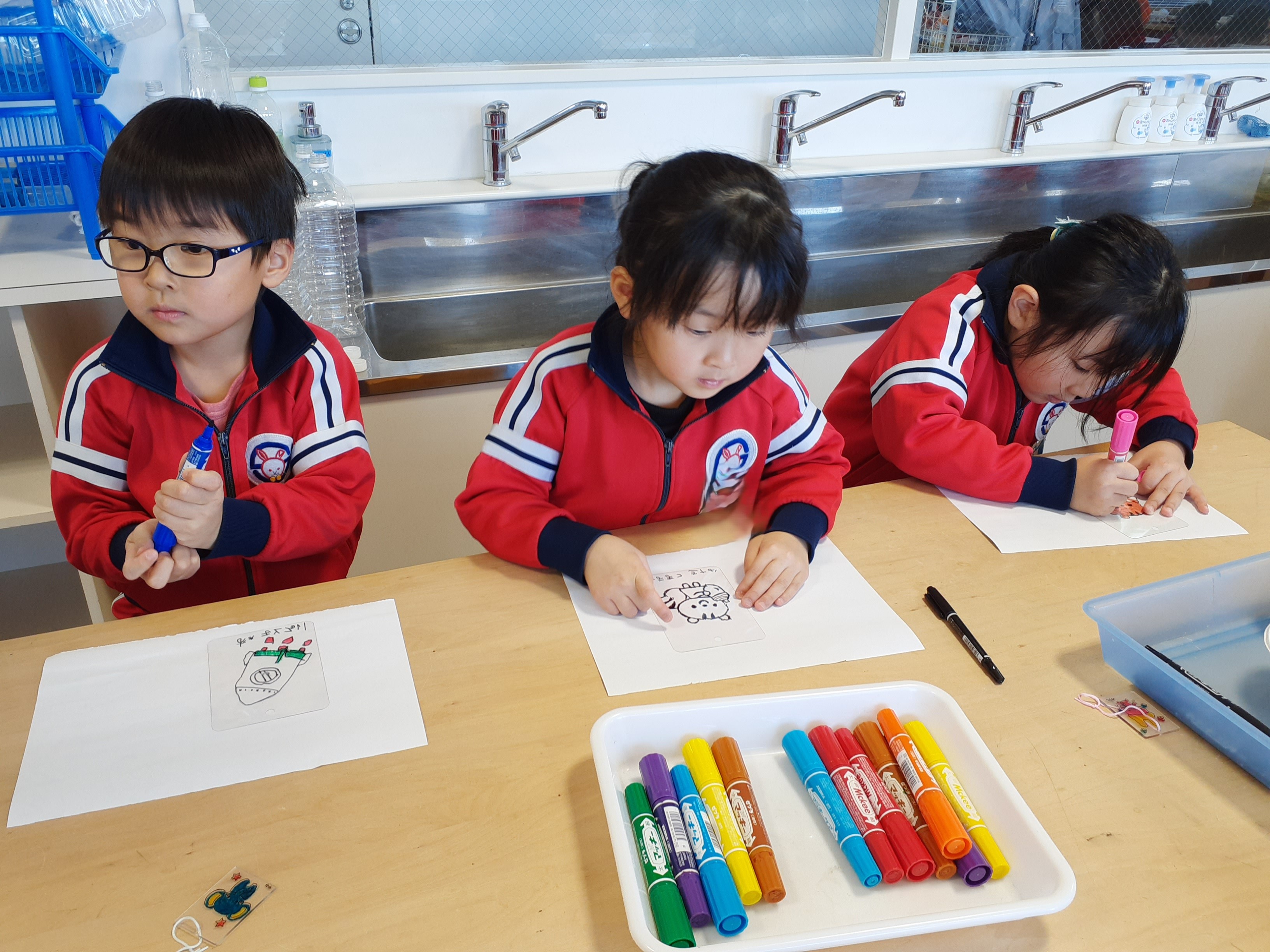 自分で好きな絵を選び一生懸命ぬってとってもかわいいプラバンが完成しました!