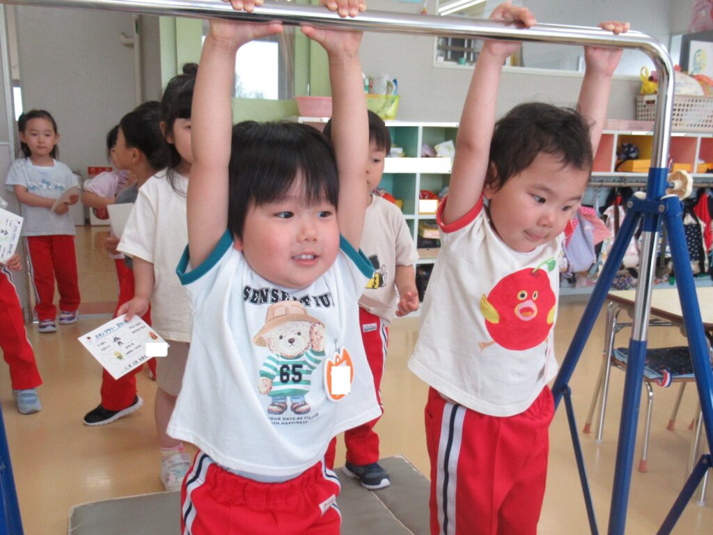 「ボタン上手に外せたよ!」「鉄棒ぶら~んってできた!!」と、ニコニコ笑顔のお友だち✨