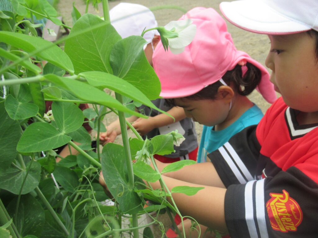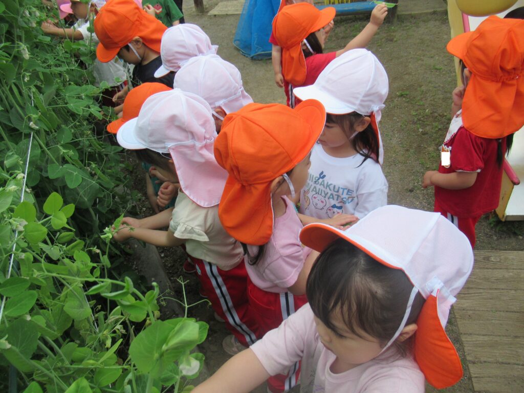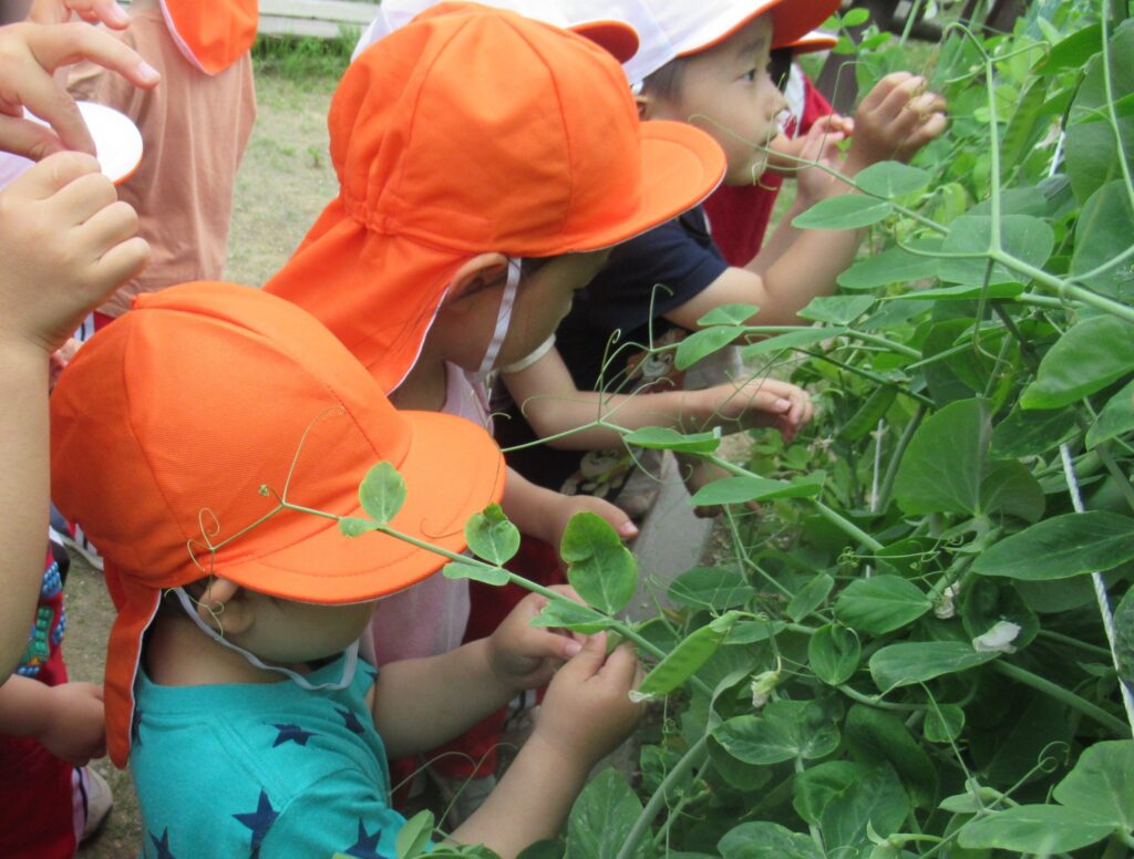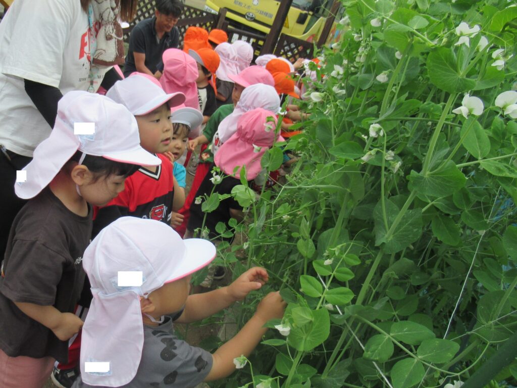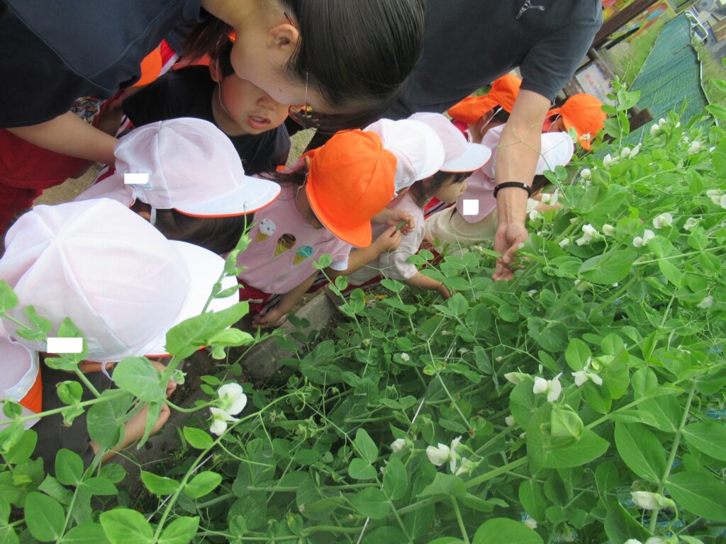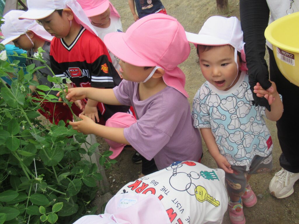「こんなにお豆いっぱいできているよ~!♪」と教えると、「いっぱい大きくなりますようにしたからだね!!」「はやく食べたいな~🌟」と、目をキラキラさせていました🥰