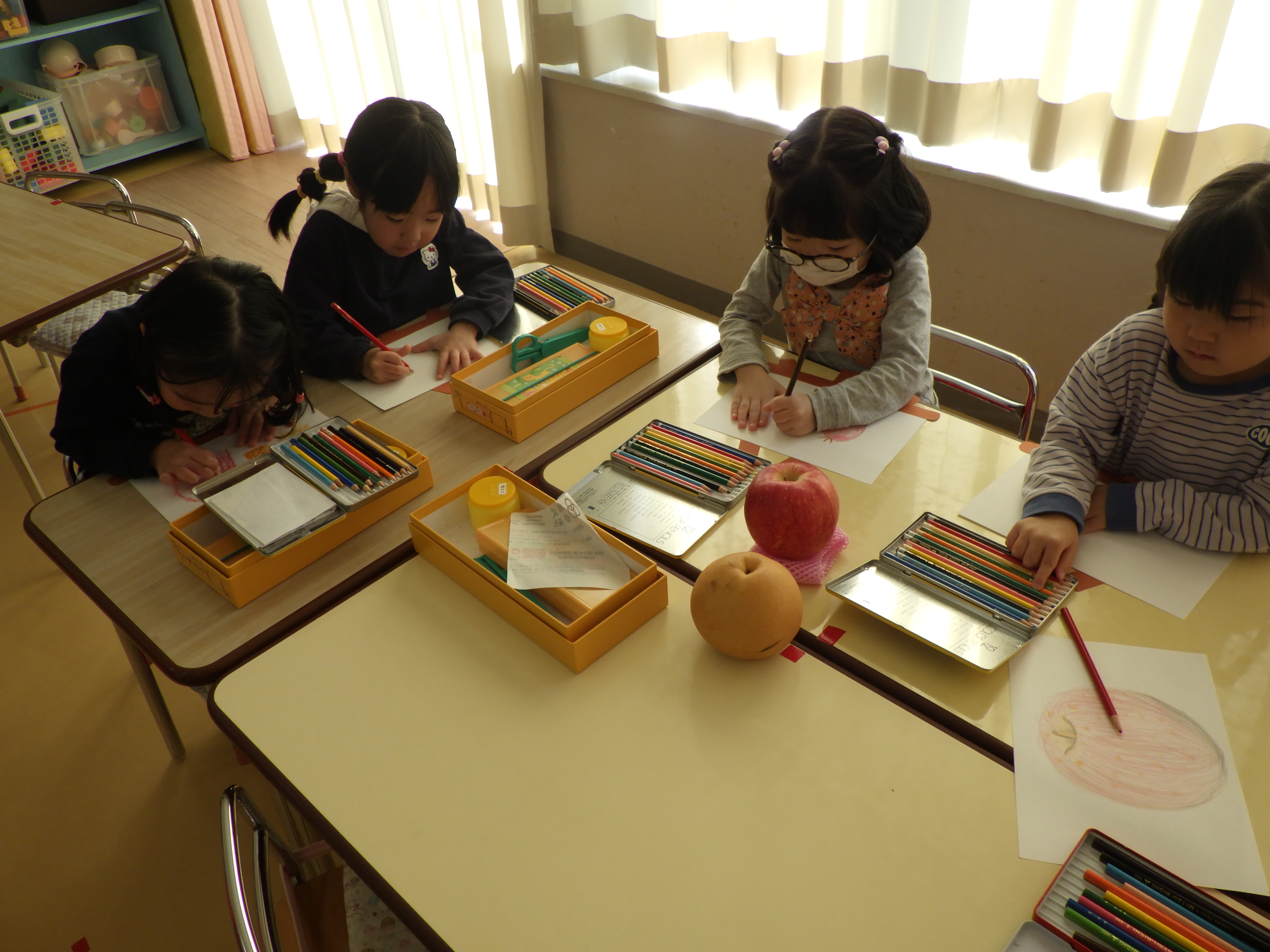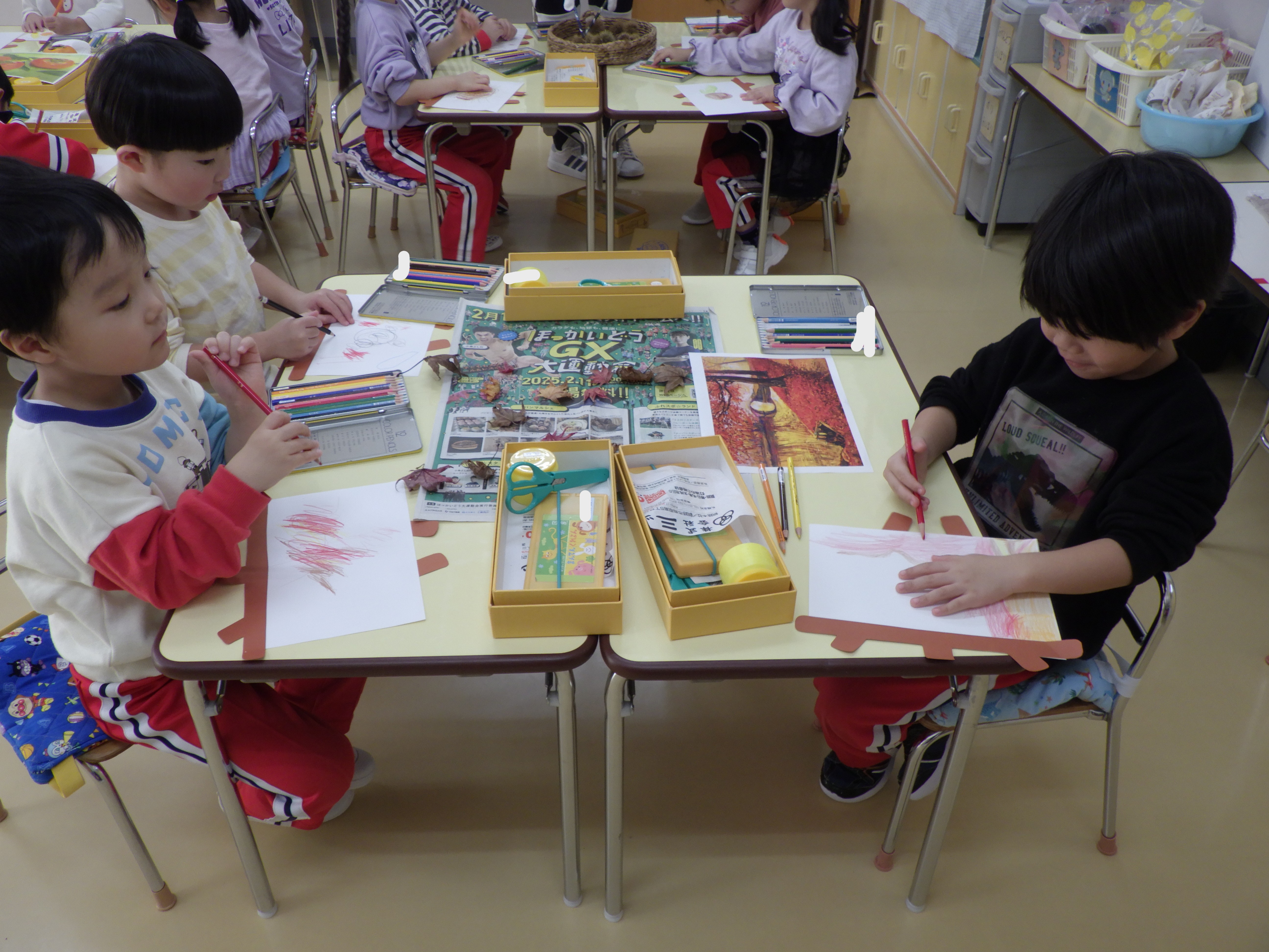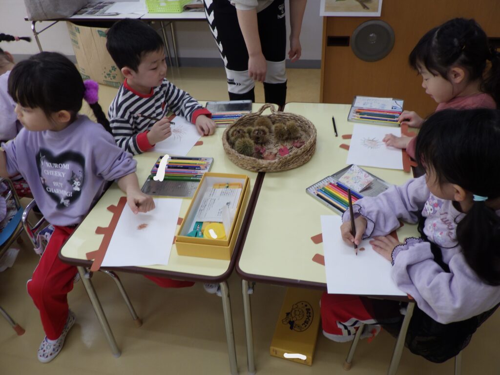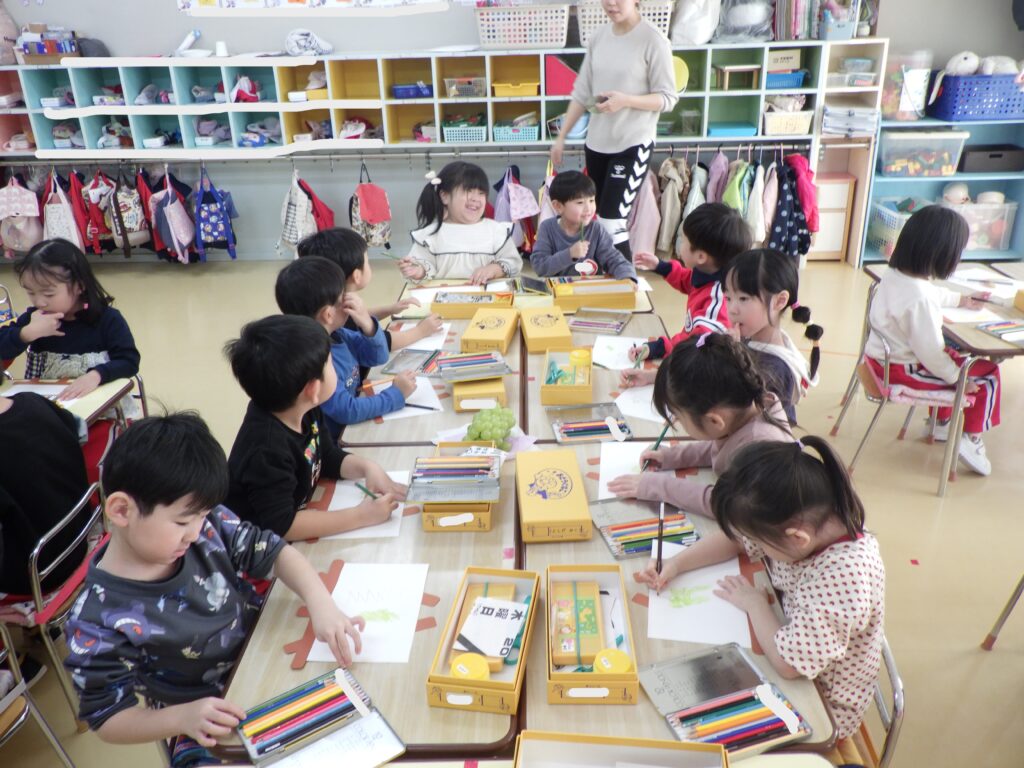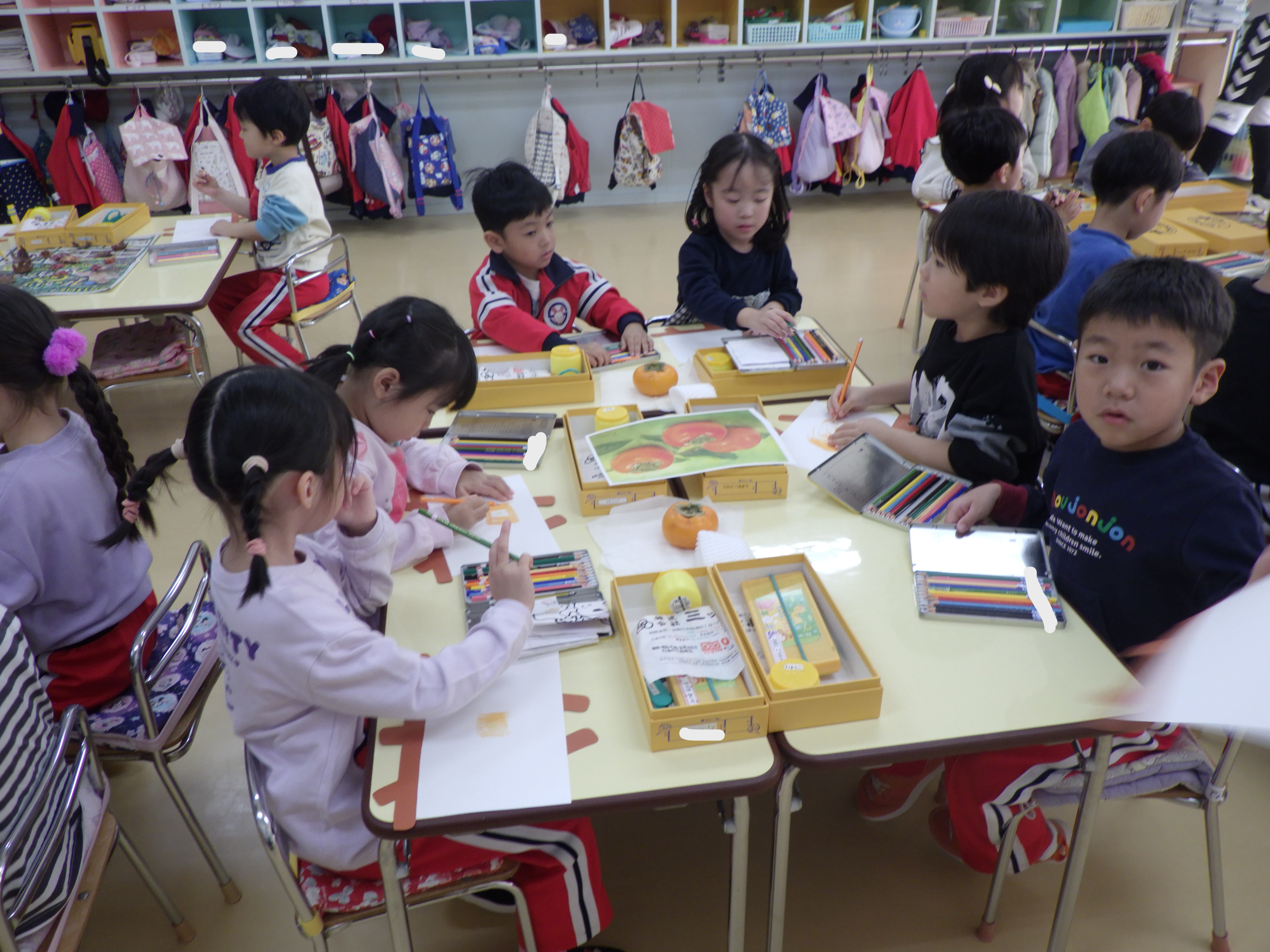 ブログ 2025.11.10 秋の製作♬ 11月10日(月)は ぞうさん・きりんさん合同で秋の製作をしました! 芸術家になって、秋のフルーツや栗、紅葉などを実際にみて色鉛筆で描きました✨ 「ここに模様あるね!」「ここの色なんか違う!」とお話しながら真剣にできました♪ 出来上がった作品にタイトルをつけて芸術家になりきりました😊 前の記事 一覧を見る 次の記事