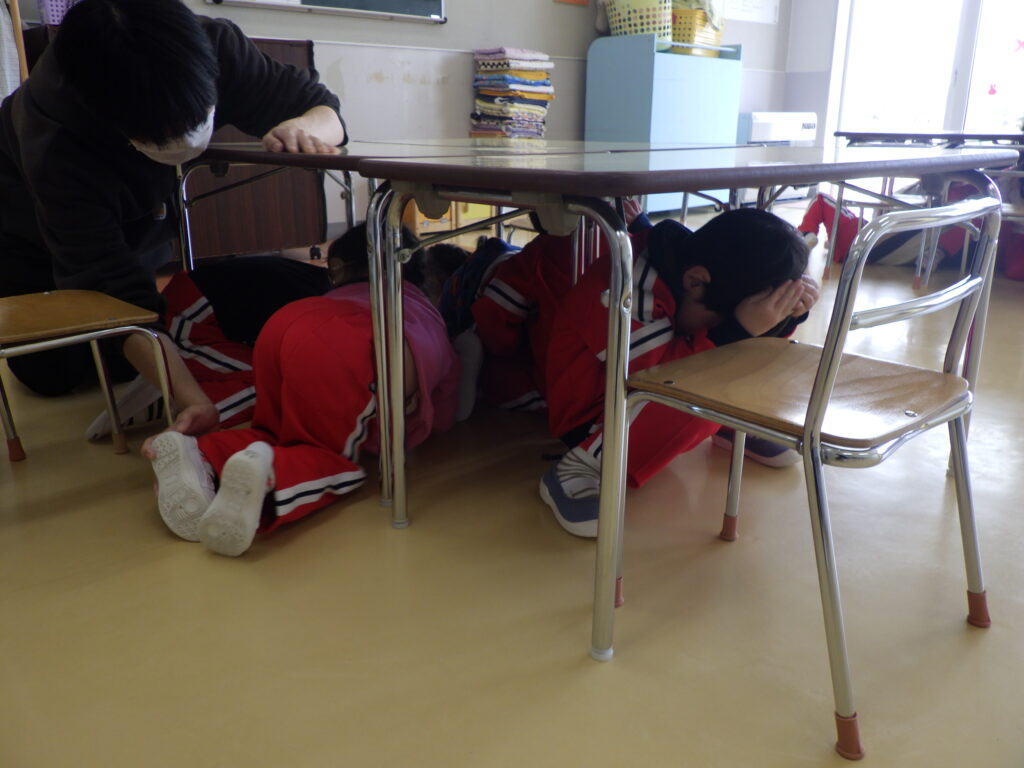 ブログ 2026.04.24 避難訓練① 4月24日(金) 今日は、今年度初めての避難訓練がありました! 今回は、地震が起きた時の訓練をしました! 放送をよく聞いて、真剣な気持ちで机の下に隠れることができました✨ 訓練が終わった後は、防災頭巾の被り方や、「おはしも」のお約束についてのお話を聞きました! 前の記事 一覧を見る 次の記事