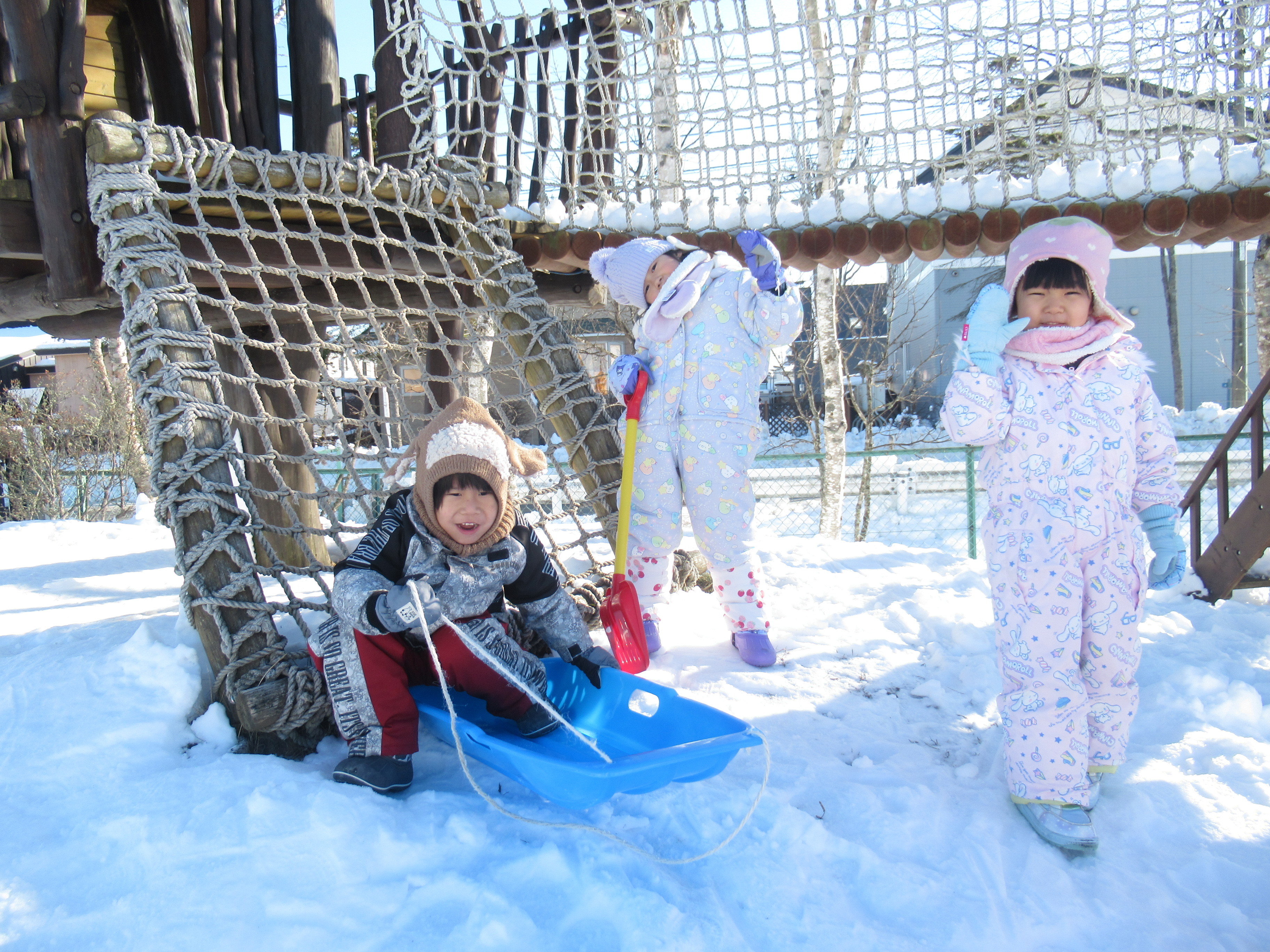 お外へ出ると「いぇーい!」と元気いっぱい遊んでいました!