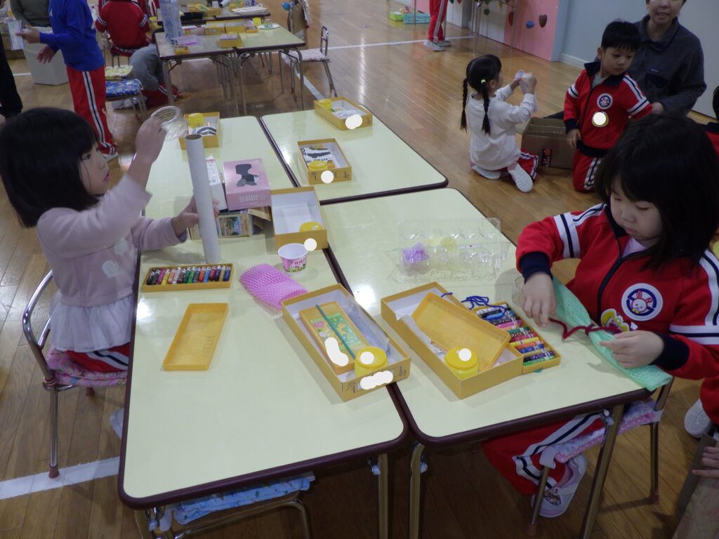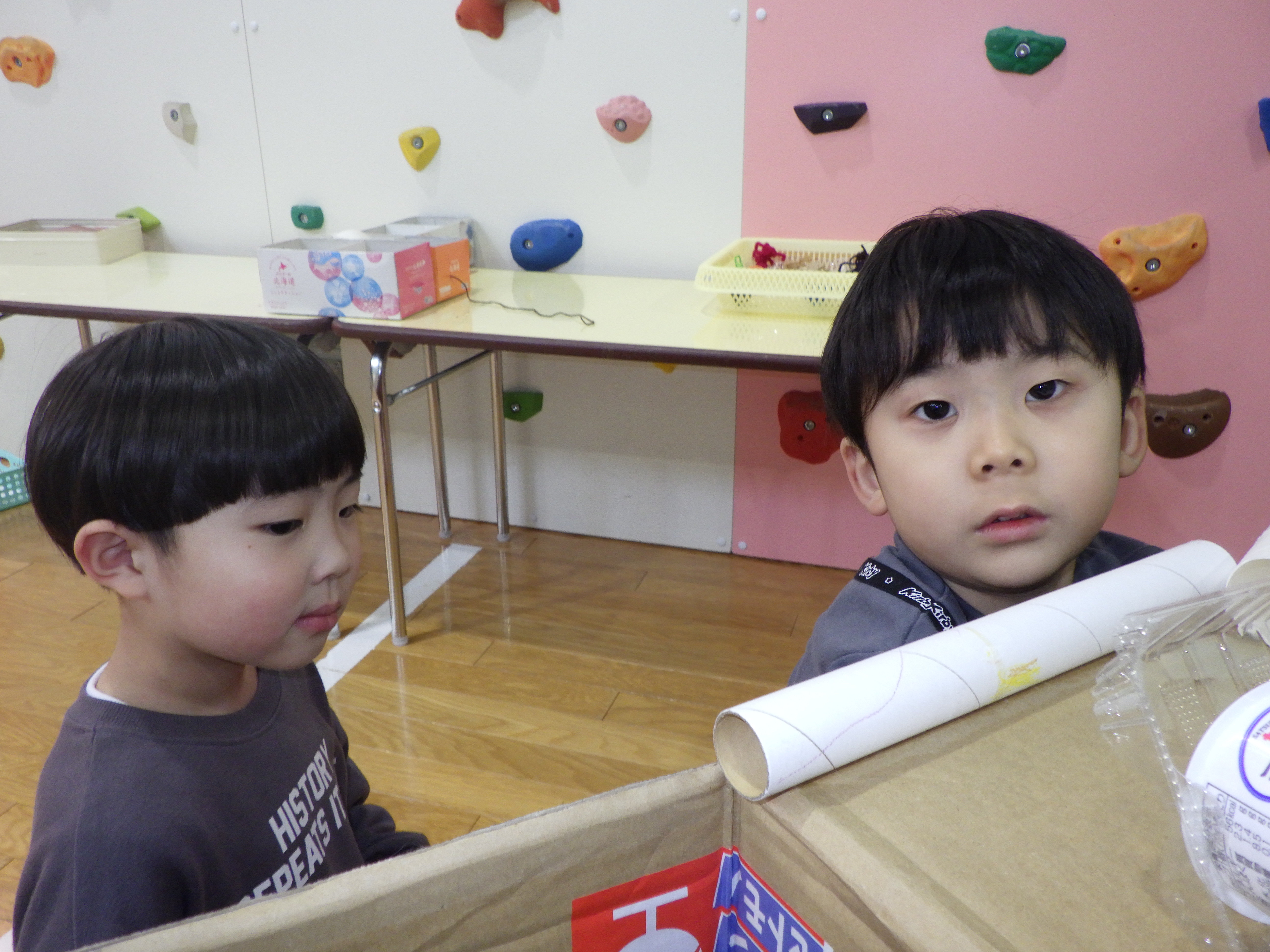 色々な廃材を使って、作りたいものを一生懸命作っていました♪